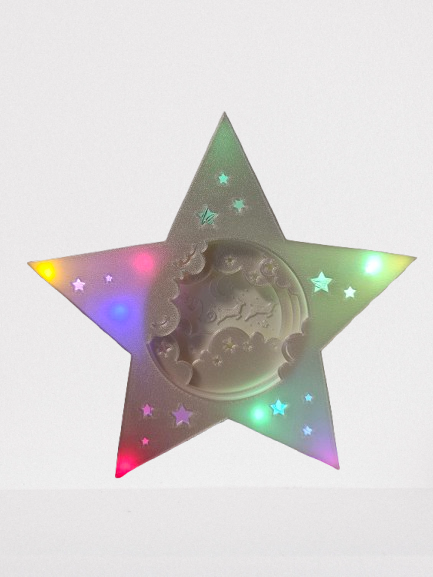 Lampa u obliku zvijezde, 3D printana s preciznošću i pažnjom prema detaljima, unosi poseban šarm u svaki prostor. Dizajnirana je da pruža ugodnu atmosferu, a dostupna je s opcijom jednobojnih bijelih lampica ili šarenih svjetlosnih efekata, prilagođenih vašem ukusu. Zahvaljujući modernoj tehnologiji 3D printanja, ova unikatna lampa kombinira estetsku privlačnost i funkcionalnost, čineći je idealnim dodatkom za dom, ured ili posebne proslave.